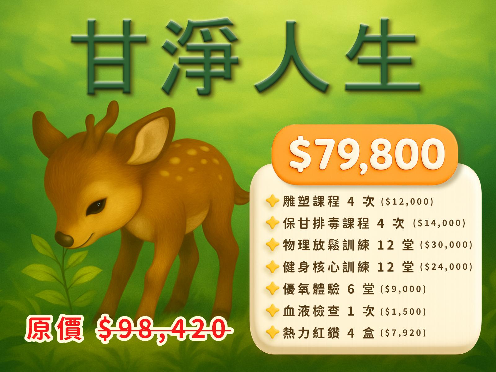 🔥試試甘淨人生+優氧會館三大體雕秘訣!✔ 最新科技,調整內臟代謝✔ 物理舒緩,放鬆緊繃肌肉✔ 專屬健身指導+優養調理,打造完美曲線🌱完整組合,給你健康新感受💪