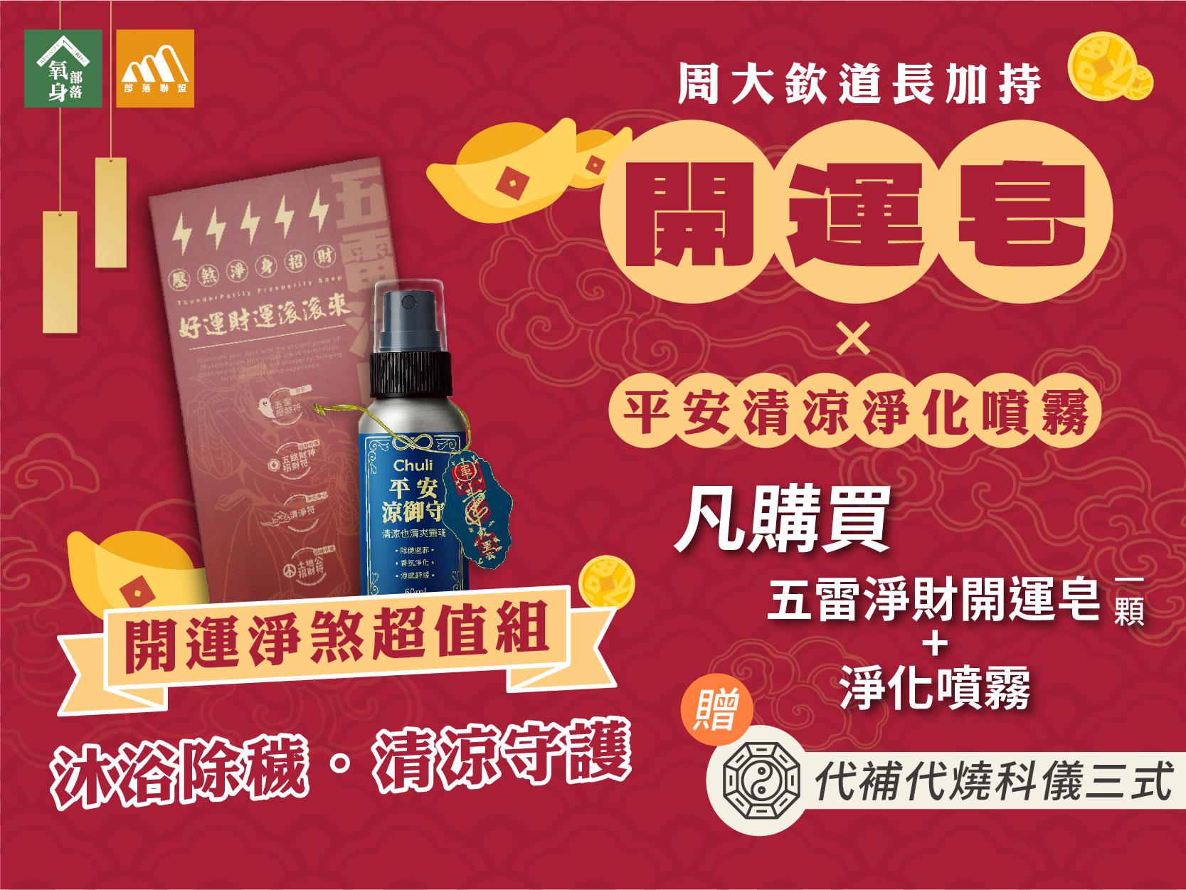 👉五雷淨財開運皂(1顆)+平安清涼淨化噴霧 (票券) x 1